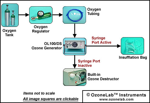 Modified Stethoscopes fed with ozone using an OL100/DS Ozone Generator fed with oxygen from an Oxygen Tank.