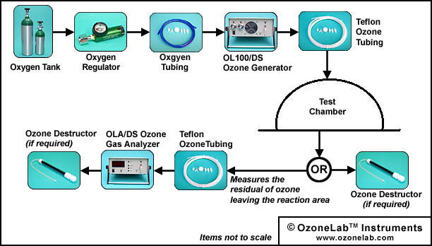 Ozone Test Chamber using an OL100/DS Ozone Generator fed with an oxygen feed (Tank & Regulator). Ozone Test Chambers are a custom item and can be designed and produced through our Custom Design and Production area.